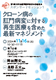 | クローン病の肛門病変に対する再生医療を含めた最新マネジメント 司会:岡林 剛史 先生 (慶應義塾大学医学部 一般・消化器外科) 演者:高野 正太 先生 (大腸肛門病センター高野病院) |