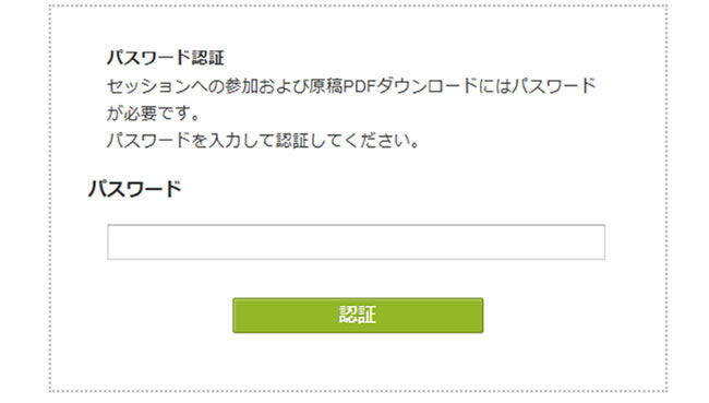 ZOOM視聴および原稿PDFダウンロードにはパスワードが必要です。